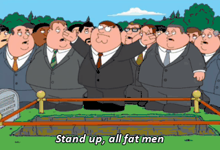 Stand up, all fat men Stand up straight Stand up because no chair Can hold your weight