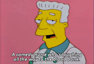 A comedy nurse who's laughing all the way to the blood bank. Okay. How many of you are here for shoulder surgery, huh? Got ya!