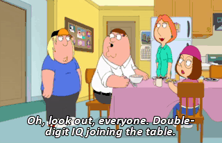 Oh, look out, everyone. Double-digit IQ joining the table. Hey, smarty, think fast. Ah! He knows. He knows it's hot. 'Cause he's smart. I don't want to talk to you guys. You called me an idiot.
