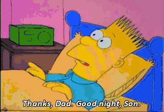 Thanks, Dad. Good night, Son. Good night, Lisa. Good night, Mom. - Sweet dreams. - Thanks, Mom. Sleep tight. I will, Mom. Don't let the bedbugs bite.