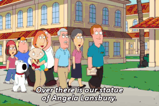 Over there is our statue of Angela Lansbury. Protect us, oh, Lansbury, from rude teenagers, from soup that is both too hot and too cold, and from anyone who calls, but please have people call.