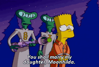 You shall marry my daughter, Moonhilda. I can't wait to lay my eggs in his brain. No son of mine will be marched down the aisle at the barrel of a ray gun! - Let's go! - (DOOR SLAMS)