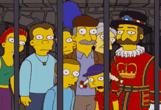 (IN MOCK BRITISH ACCENT) He claimed he was me father, he did. Bart, you're not helping. Poke the monster with a stick! Tuppence a jab! Come on, queue up, lads.