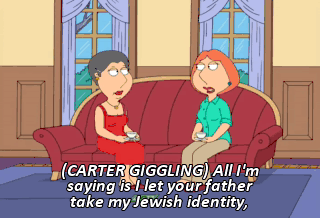 (CARTER GIGGLING) All I'm saying is I let your father take my Jewish identity,