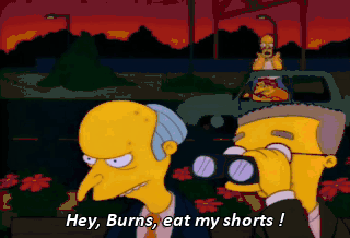 Hey, Burns, eat my shorts ! Who the Sam Hill was that ? Why, it's Homer Simpson, sir. One of the schmoes from Sector 7G.