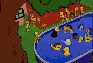 People! People! It's time we all discussed the pool safety rules. jump, Bart! Jump! jump, Bart! Jump! - You got it! - Hey, Bart! Your epidermis is showing! It is? Oh.