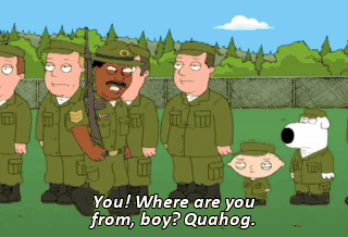 You! Where are you from, boy? Quahog. They only got two things in Quahog. Steers and queers! I don't see no horns on you. What does that make you, boy? Queer? Right! Oh, I got it? Yeah.