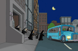 Excellent, excellent! Hello. oh, We're not Jewish. But I hear you people have such lovely services. Oh, my God! I--I didn't mean "you people."