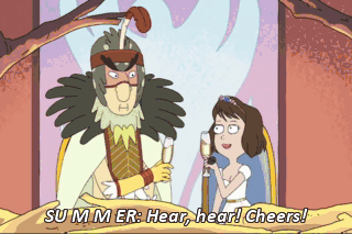 SU M M ER: Hear, hear! Cheers! Cheers to that, motherfucker! Thank you, Rick. That was beautiful.