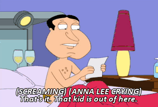 (SCREAMING) (ANNA LEE CRYING) That's it. That kid is out of here. Hey, there's another note. "Glenn, this is your child. Next time wear a condom..." Oh, that's the note from earlier. I need a file cabinet.
