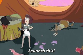 Squanch this! Good thing I grabbed a space weapon. RICK: That's a confetti gun, you fucking idiot!