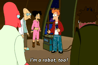 I'm a robot, too! Aha! That explains this growth on your drive shaft! But how is this possible? Who knows? Oh, I do. Allow me to explain what really happened the day the ship crashed.