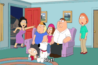 Slut! How could you do that to me, Joyce? Oh. Hello, Lois. I told you that in confidence! You totally humiliated me! Well, then I guess now we're even.