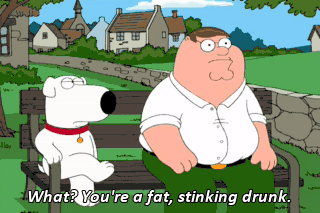 Wait a minute, Brian. That's it. I'm a fat, stinking drunk because my father is a fat, stinking drunk. And I got to prove it to him.
