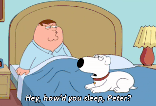 - Hey, how'd you sleep, Peter? - Brian, last night I had this crazy dream. I was eating a sheep and now my pillow's gone. Oh, wait. Here it is. What the hell was I eating? (BLEATING)