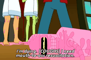 I'm dying. (COUGHS) I need mouth-to-ass resuscitation.