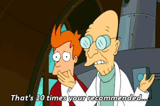 That's 10 times your recommended... Who are you, my warranty? (CHUCKLES) That was a good... (LAUGHING) (POWER SURGING) Huh? For God sakes, Bender, keep dancing!