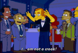 I... am not a crook! Eh? Richard Nixon. I know! Do the hustle Oh, my God! It's my old boyfriend, Artie Ziff. Hello, Marge. Have you heard? I'm stinking rich.