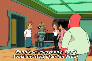 Good-bye, everybody! Don't touch my stuff after I'm dead! It's booby-trapped!