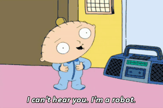 I can't hear you. I'm a robot. Come on, knock it off. Does not compute. undefinedI'm going to bed. " do not require sleep.