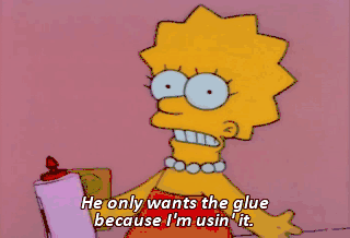He only wants the glue because I'm usin' it. - Oh, yeah ? Prove it. - Here. Hey, man, I don't want your stupid glue.