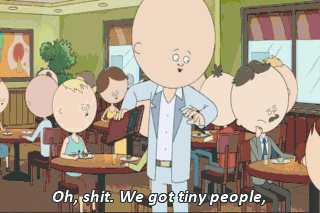 Oh, shit. We got tiny people, Lii’ Bits! You hungry? Come on down. Lii’ Bits. Eat some fucking shit, you fucking stupid bitch. Just kidding.