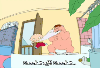 Knock it off! Knock it... Come on! Come on, Stewie. You're acting crazy out there, man. (SIGHING)