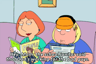 Hey, Mom, the school janitor said that Dad's working for the bad guys.