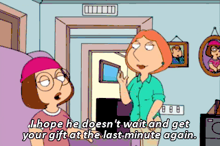 I hope he doesn't wait and get your gift at the last minute again.