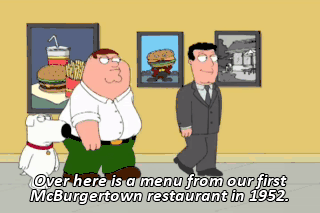 Over here is a menu from our first McBurgertown restaurant in 1952.