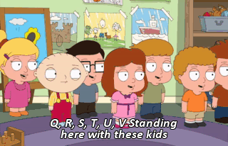 Q, R, S, T, U, V Standing here with these kids W, X, Y and Z Waiting for the song to end