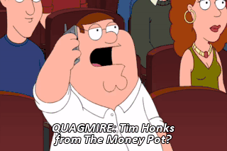 QUAGMIRE: Tim Honks from The Money Pot? Yeah, that's right, yeah. So can you help me? QUAGMIRE: All right, Peter, find a hot girl and touch her. I'll be able to see what she sees. It's blue.