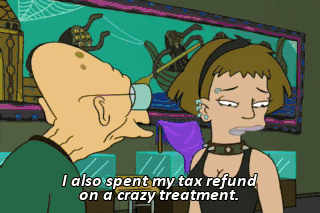 I also spent my tax refund on a crazy treatment. That certainly is honest. It's better for us to both just be ourselves. You, wrinkled as a prune-- You, fat as the queen of sea cows. I love you!