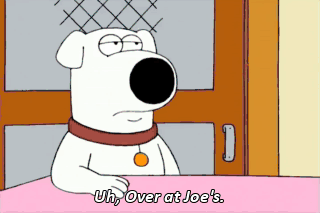 Uh, Over at Joe's. Well, go fetch 'em. They're about to see a real hero in action. To the BatcAve! oh-oh. Oh, God! Oh, God! Oh, God!