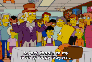 In fact, thanks to my team of loopy lawyers... (CLEARS THROAT) ...I never have to give you another penny. All you get is a very valuable lesson. Never trust a weirdo! Azoot! I'm stuck on a nail!