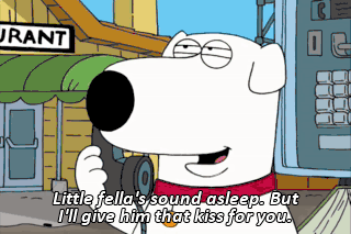 Little fella's sound asleep. But I'll give him that kiss for you. You suck! See you in 3 days. Let's go.