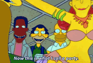 Now this is what I call a party. How do I tell you this, my boy ? We're in hell. Look at him squirm. You care to dance ? She wants you, Homer.