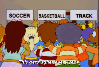 This gets uglier every year. Any sign of Bart and Milhouse? No. And if they don't get here soon, it'll be T.S. for them. I don't feel right.