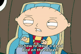 Or how to leave a dead bird on the carpet? That was a gift, you bastard. That was a gift for the family.