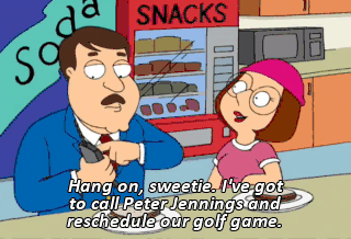 Hang on, sweetie. I've got to call Peter Jennings and reschedule our golf game. This is Peter. You know what to do.