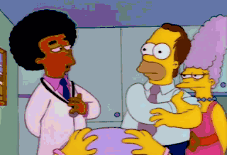 Oh, a college boy, eh? Homer, let him deliver the baby! Homey, isn't he beautiful? As long as he's got eight fingers and eight toes, he's fine by me. Oh, Bart! Daddy's little angel. Ah!