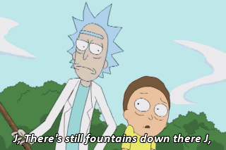 J, There's still fountains down there J, J, Look on down from the bridge J,