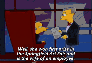 Well, she won first prize in the Springfield Art Fair and is the wife of an employee.