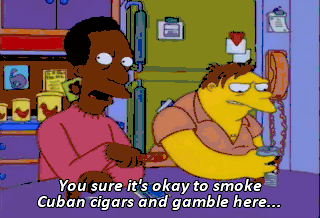 You sure it's okay to smoke Cuban cigars and gamble here...