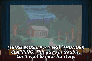 (TENSE MUSIC PLAYING) (THUNDER CLAPPING) This guy's in trouble. Can't wait to hear his story.