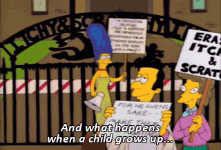 And what happens when a child grows up... with insanely violent role models like these ? The answer is all around you. How many of you were hit on the head with mallets last week ? Yeah ! Yeah !