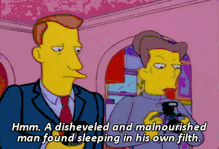 Hmm. A disheveled and malnourished man found sleeping in his own filth.