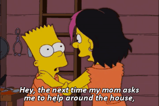 Hey, the next time my mom asks me to help around the house, I could come live with your family. (GRUNTS) Don't get fresh with me, jerk!