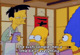 The sushi sampler has a little bit of everything.