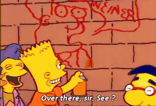Over there, sir. See ? Look out, Bart. Here comes Skinner. Yikes ! Hmm.